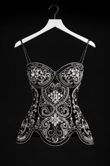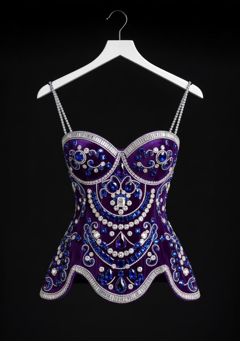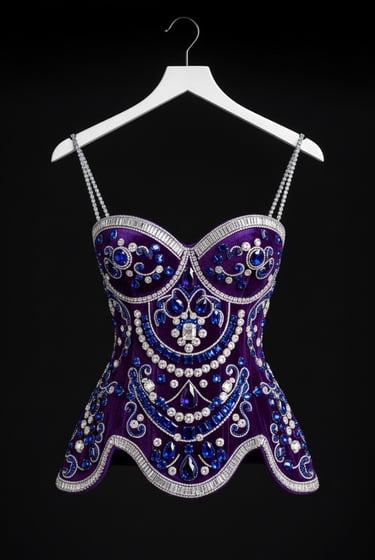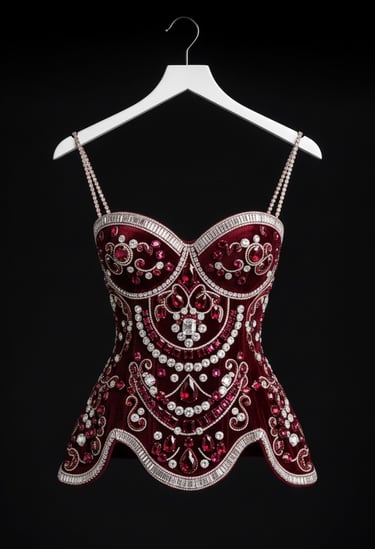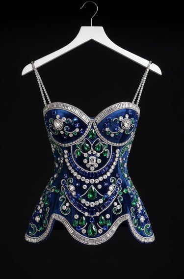A couture collection inspired by royal jewels and sculptural femininity, deep velvet, luminous crystals, and refined craftsmanship unite to express strength, elegance, and modern feminine power.